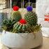 Desert Jewel Cactus Garden is a modern succulent arrangement featuring a curated mix of textured cacti accented with vibrant jewel-tone blooms. Designed in a sleek concrete bowl, this low-maintenance cactus garden brings bold desert style to any home or office. Ideal for gifts or contemporary décor, it offers long-lasting beauty with minimal care. Perfect for adding a touch of Southwestern charm and modern elegance to any space.