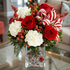 This exquisite arrangement is crafted in a stylish pave style, showcasing a harmonious blend of vibrant red and pristine white blooms that evoke the spirit of the season. The tightly packed flowers create a lush, modern look, making it a perfect centerpiece for your dining table or a thoughtful gift for loved ones.