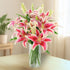 Shine the light on the one you love with fragrant pink Oriental lilies. With many pink varieties these flower blooms may vary from the Stargazers deep pink to Sorbonne's medium blush, depending on the season's availability. Each variety lends it's special perfume to the air as they burst open day after day.
